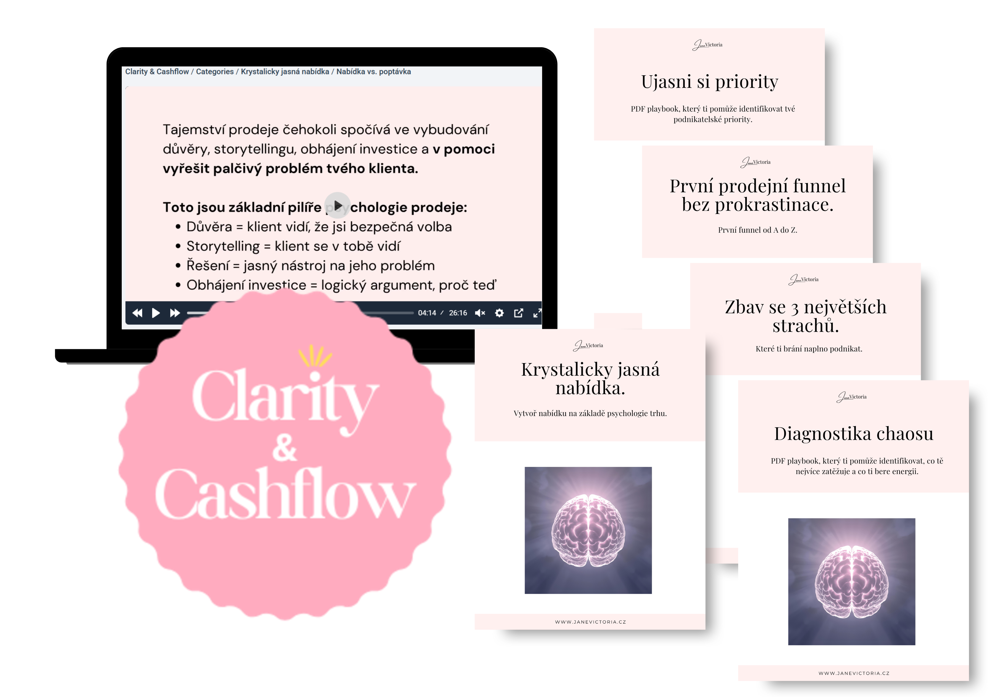 Clarity & Cashflow je staletími prověřená prodejní strategie, která vede k pravidelným příjmům BEZ ZAHLCENÍ, NEKONEČNÉHO STRESU A ÚNAVY.